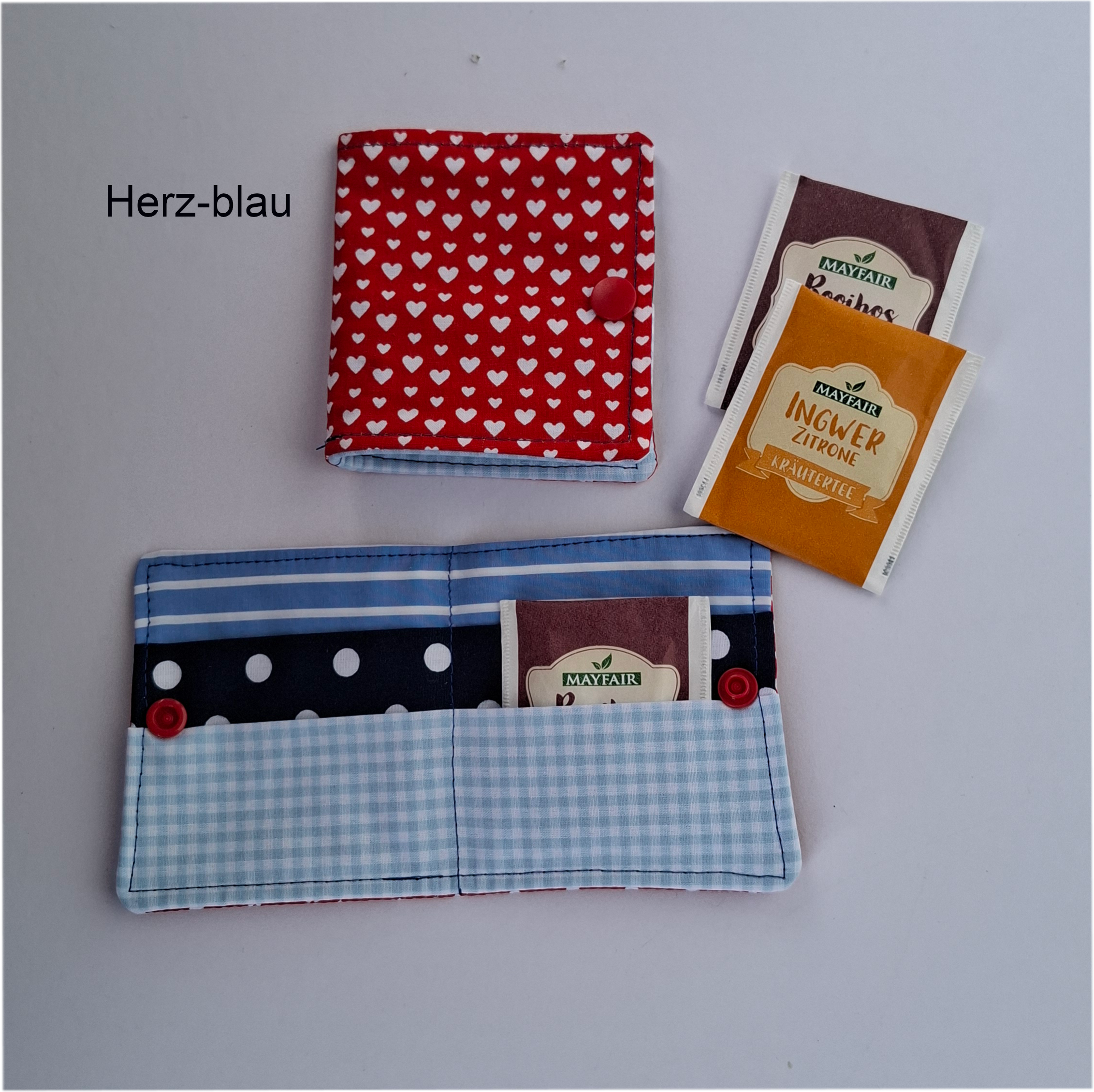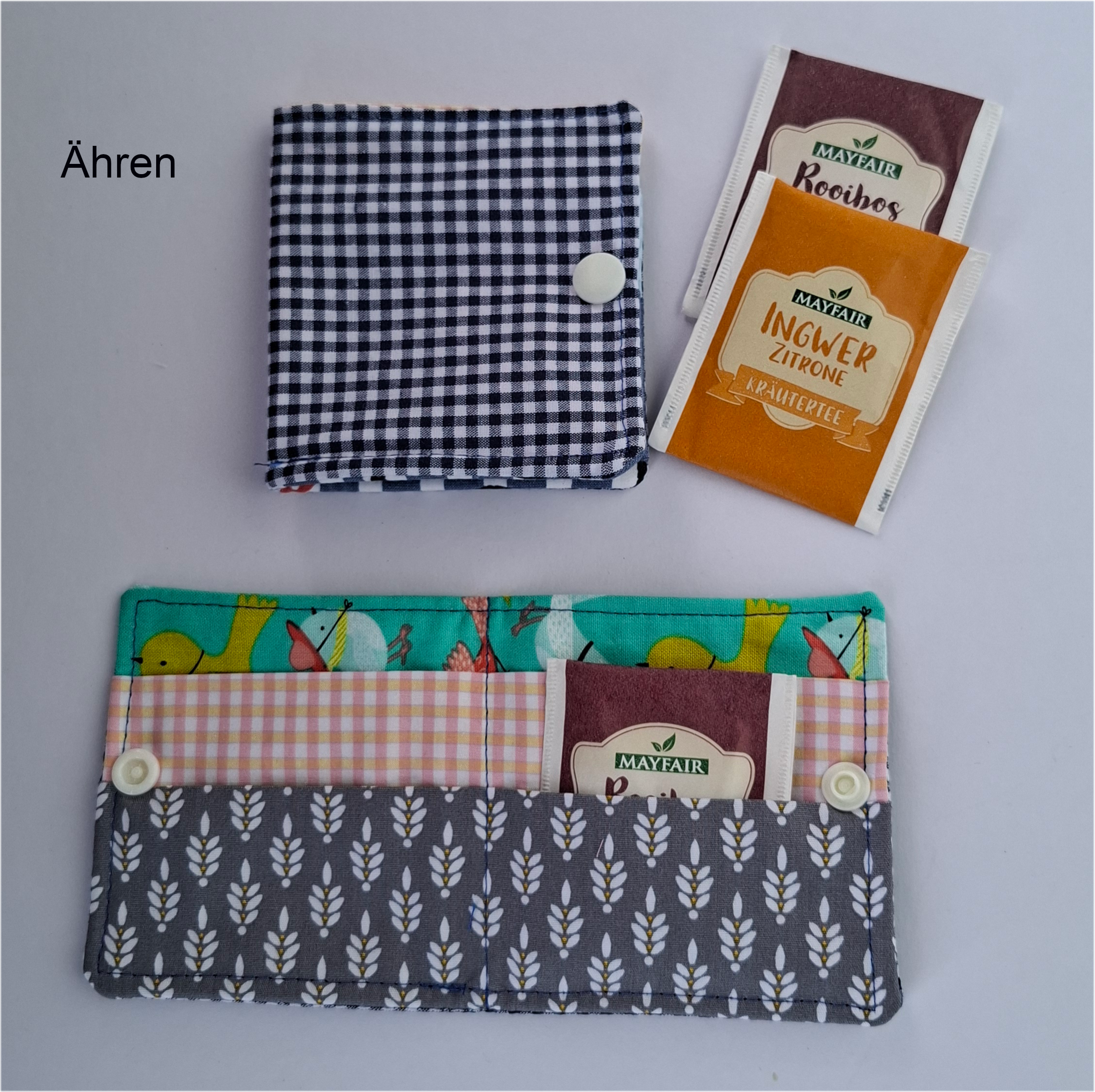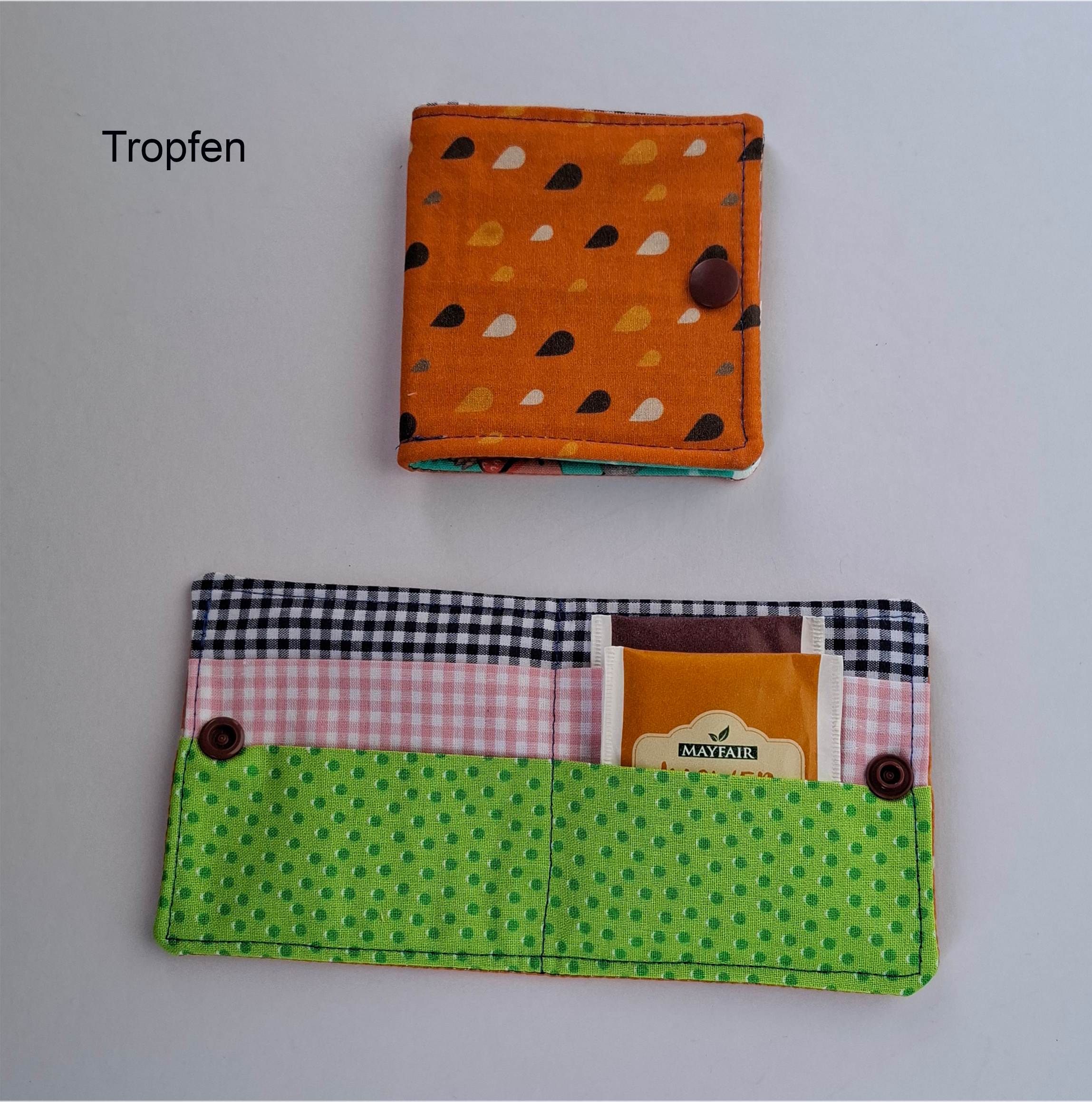In dem praktischen Täschchen finden mindestens vier Teebeutel Platz, es kann platzsparend zusammengeklappt und mit dem Druckknopf sicher verschlossen werden. Passt in jede Handtasche!