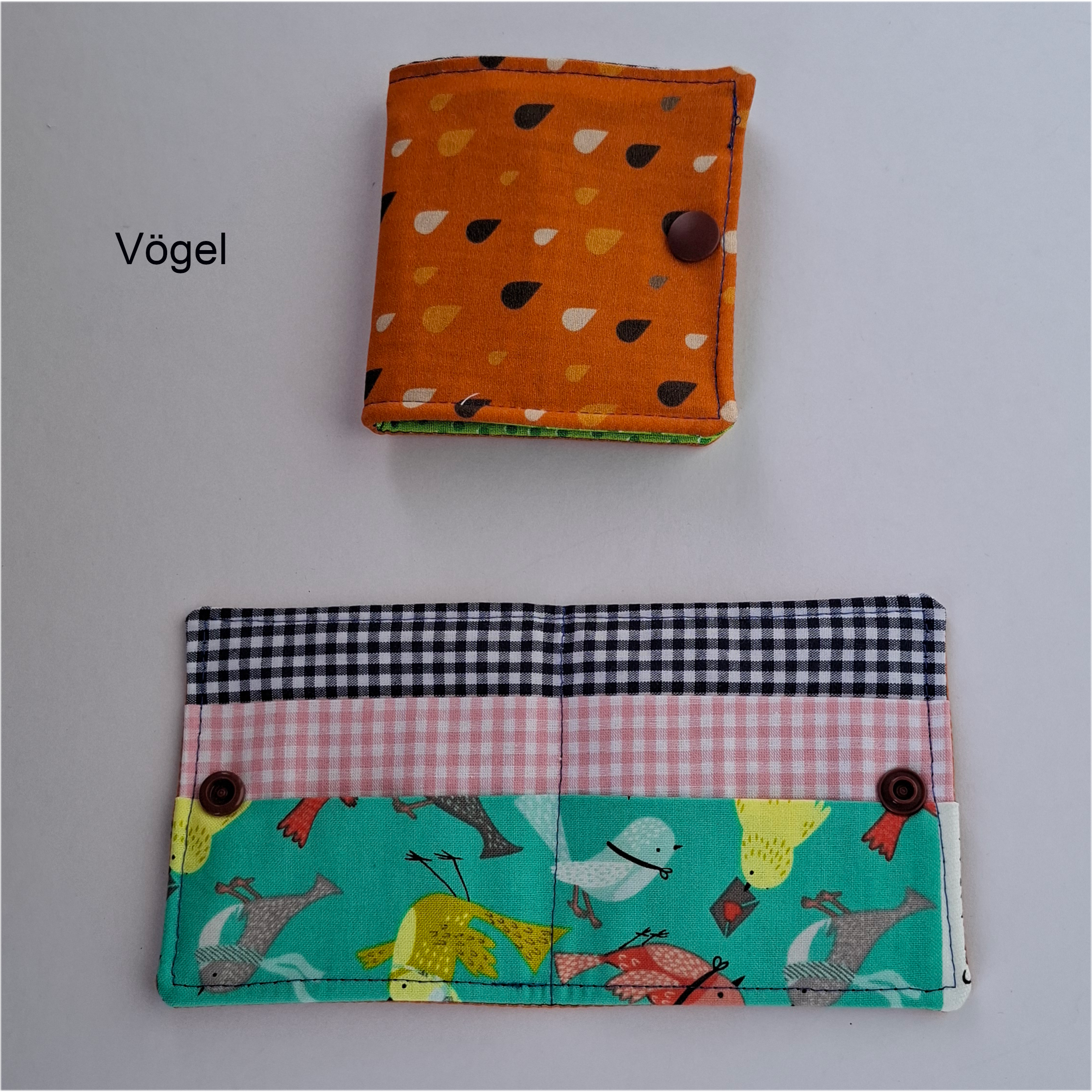 Diese Täschchen sind aus Baumwollstoffen genäht und werden mit einem Kam Snap verschlossen.