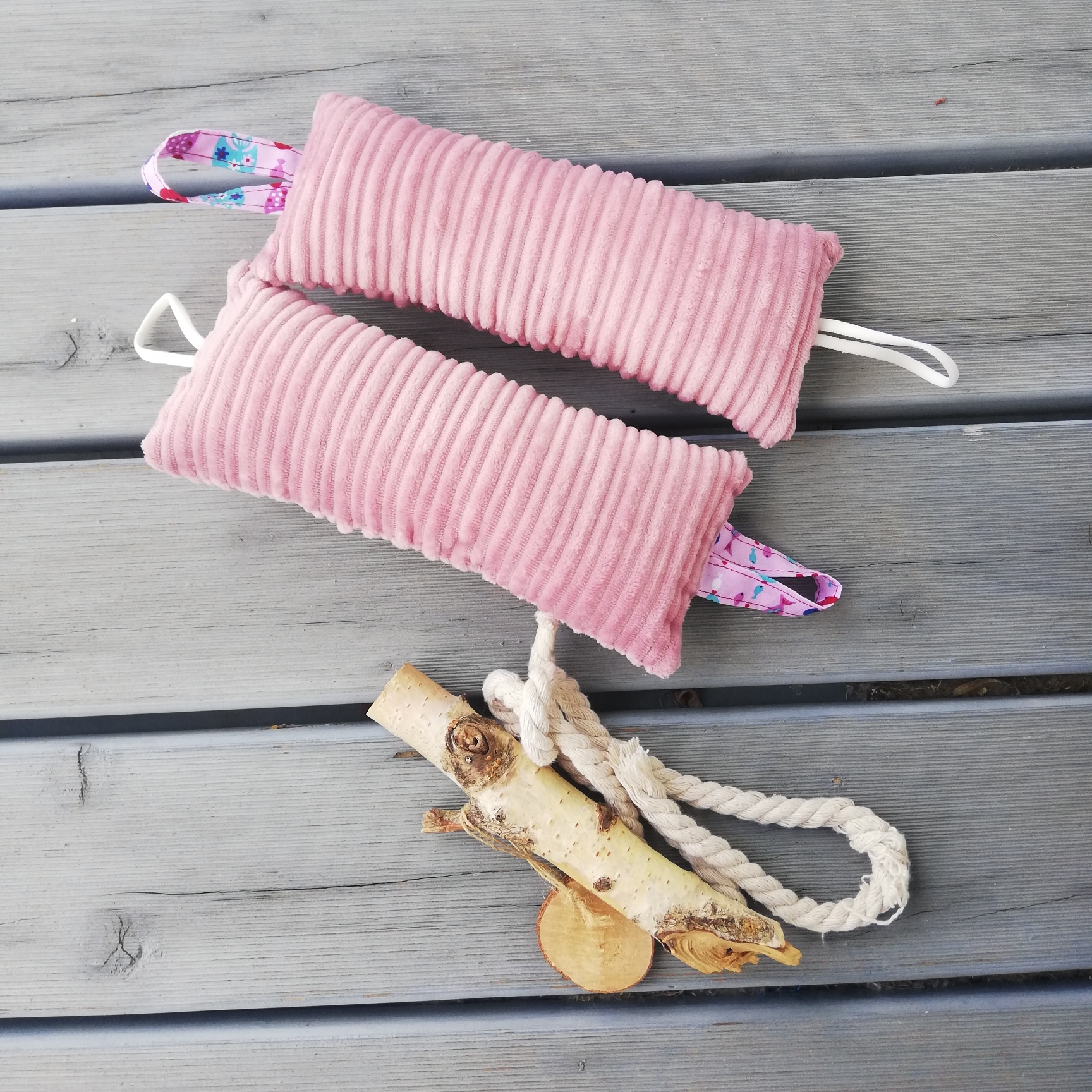 Die Stopper sind mit Stoffschnipsel (nachhaltige Stoffresteverwertung) und teilweise Füllwatte gefüllt, die Schlaufen sind besonders fest angenäht, damit sie nicht abreißen können.